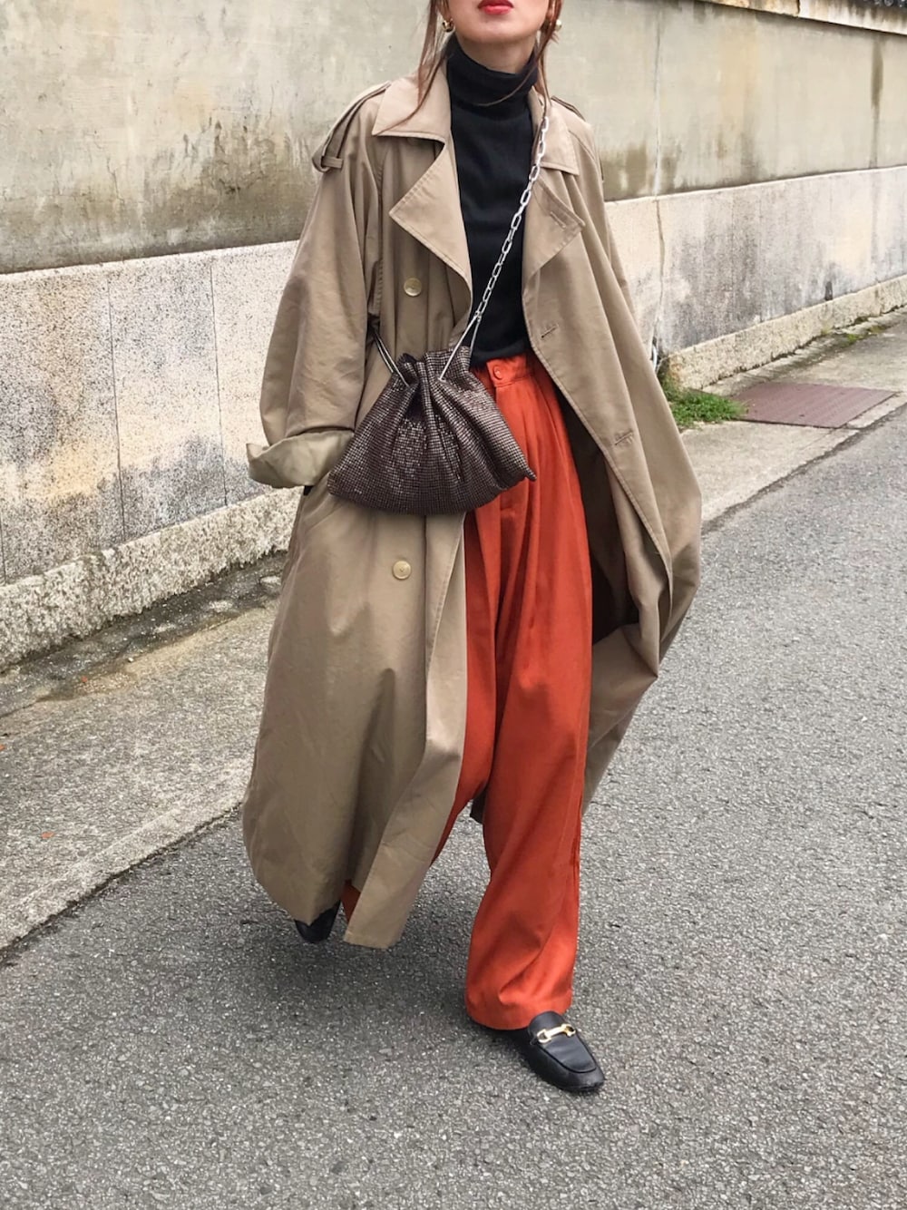 Kumika☆のトレンチコート「WASHED FINX CUPRO TWILL LONG COAT」を使ったコーディネート