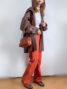 秋冬にも映えるダークオレンジ🍊 antiqua×kumika タックパンツ 完売していた、テラコッタ、ブラウン、ブルーの3色、 本日20:00〜再販します✨✨ 高見え素材なのにウエストゴムで楽ちんなので、 色違いで愛用しています☺️❤️ インスタ @kumika_iiio2