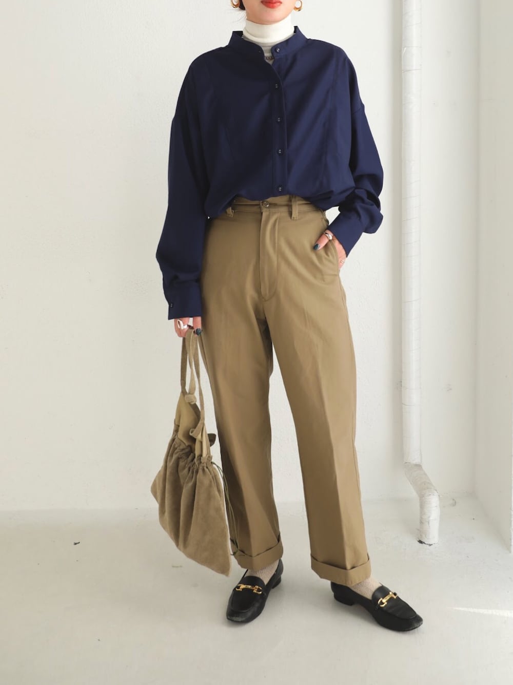 ネイビーシャツとチノ♡ シャツは3色展開です😊 インスタ @kumika_iiio2