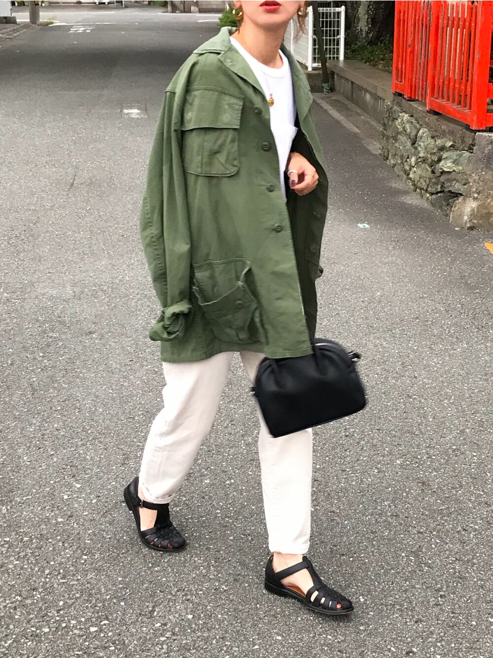 白コーデに古着のミリジャケ🍂 インスタ @kumika_iiio2