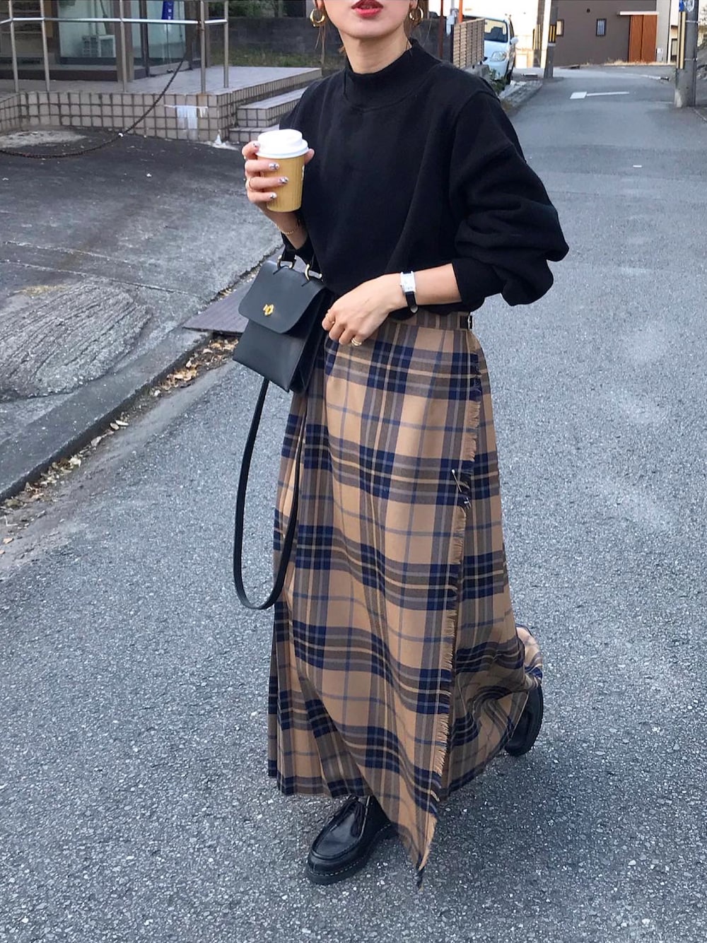 チェックのマキシスカートにモックネックスウェット🍂 kleeのモックネックはcoming soon。 インスタから飛べます☺️ インスタ kumika_iiio2