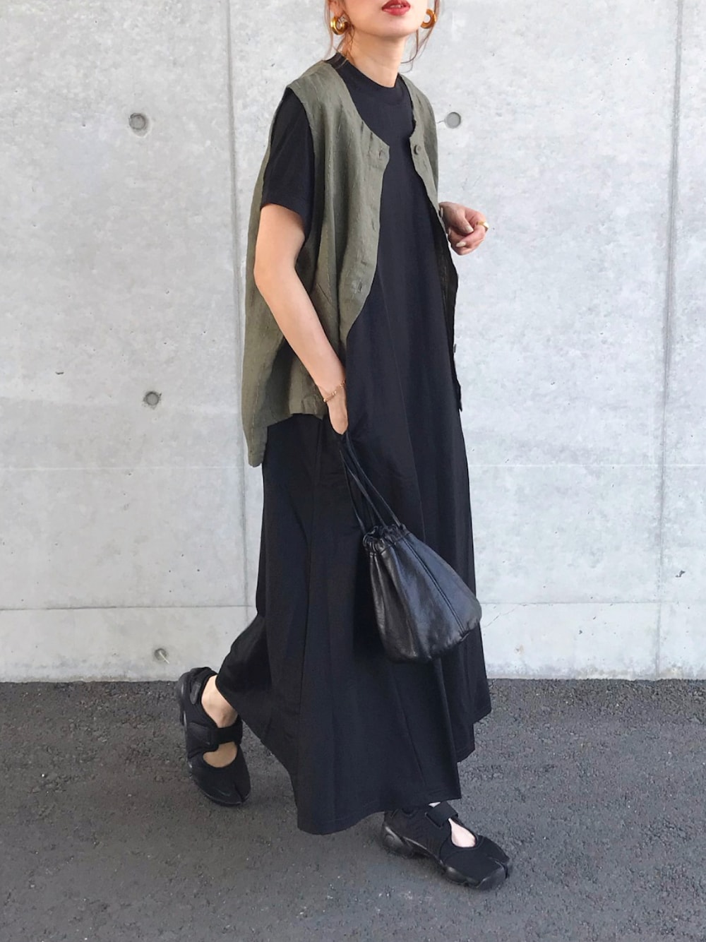 omnesワンピに、kleeのリネンベスト♡ ワンピースは商品探せなかったのでまた後で紐付けします🙇♀️ インスタ @kumika_iiio2