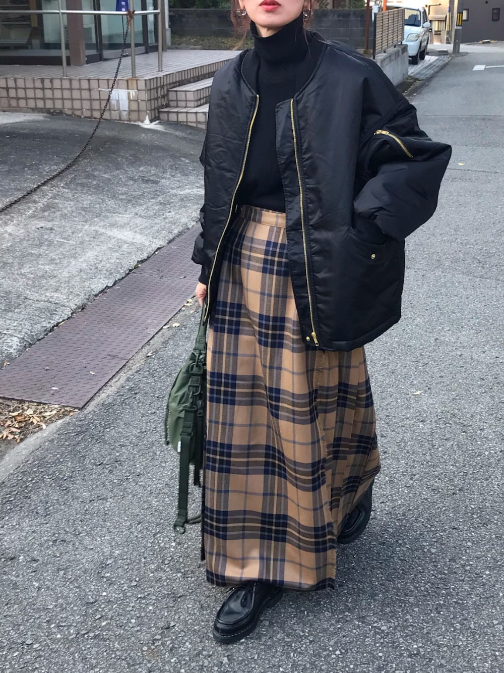 チェックスカートとma1💕 インスタ @kumika_iiio2