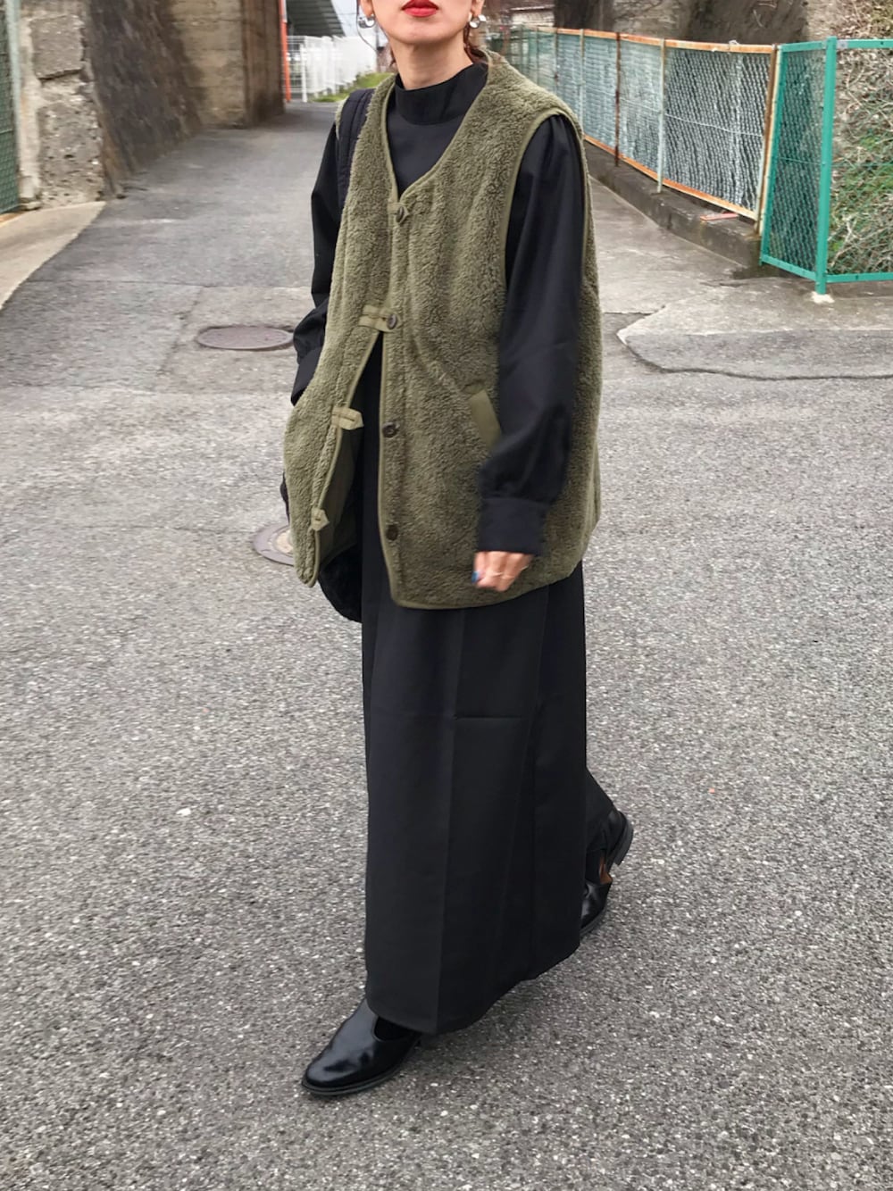 ブラックコーデにボアベスト♡ インスタ @kumika_iiio2