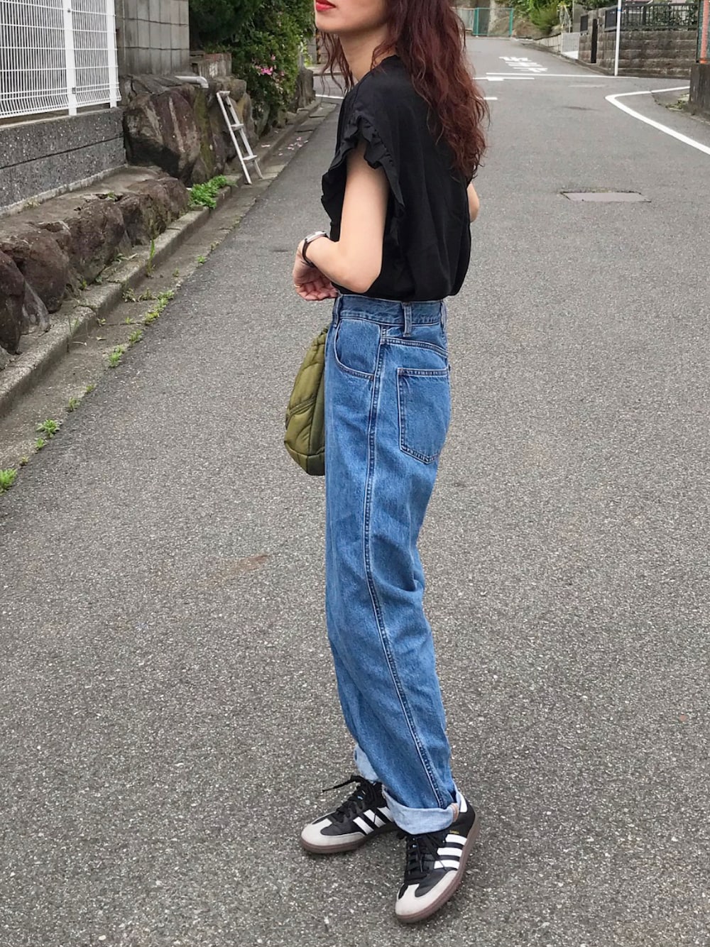 黒のフリルとデニム💓 インスタ @kumika_iiio2