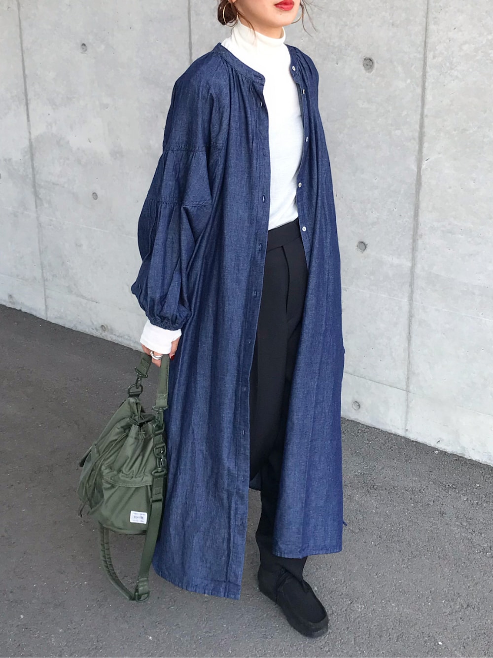Kumika☆のワンピース「シャンブレー袖ボリュームシャツワンピース」を使ったコーディネート