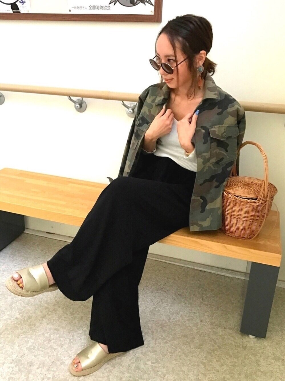 ZARAのウエストリボンのリラックスパンツに、シンプルな白トップスに迷彩ジャケット😘 に、ゴールドのサンダル💕 今日は仕事終わってから、お友達にフットネイルしてもらったよー❤️ イエロー❤️ベルイエロー🙌💕 やっとサンダルがいっぱい履けるー✌️✨ フットネイルの写メは、blogに後ほど載せまーす❤️