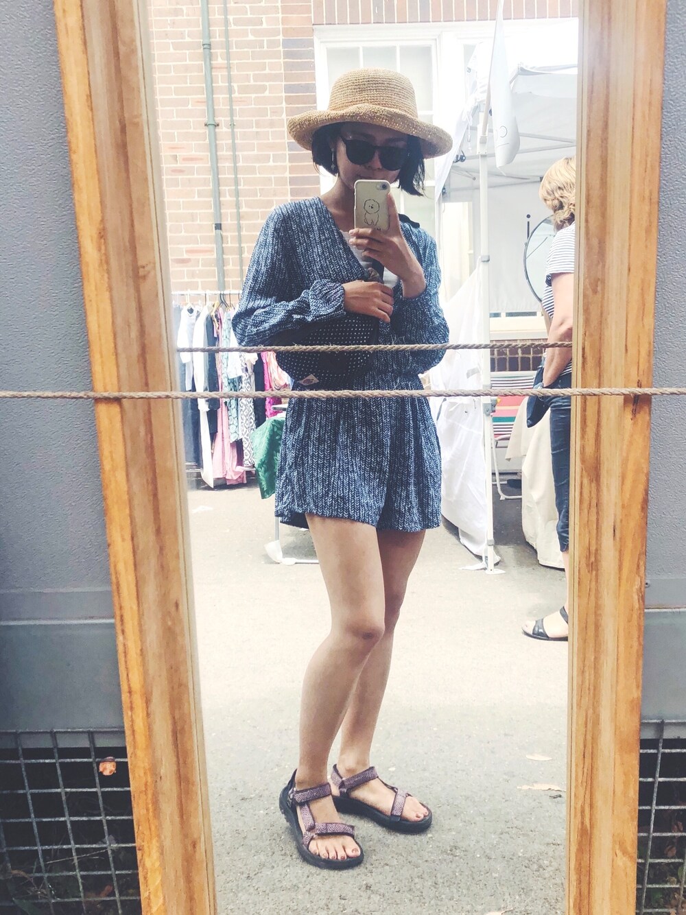 季節外れな投稿で、寒々しくてすいません… 残すところ後2日になったオーストラリア旅、今日はbodaiビーチ近くのマーケットへ。 このオールインワンは昨日別のセカンドハンドマーケットで10ドル(800円くらい!)で買ったもの。柄がとてもかわいくてシルエットも抜群、海外旅行用にぴったりだったので即買い(笑)