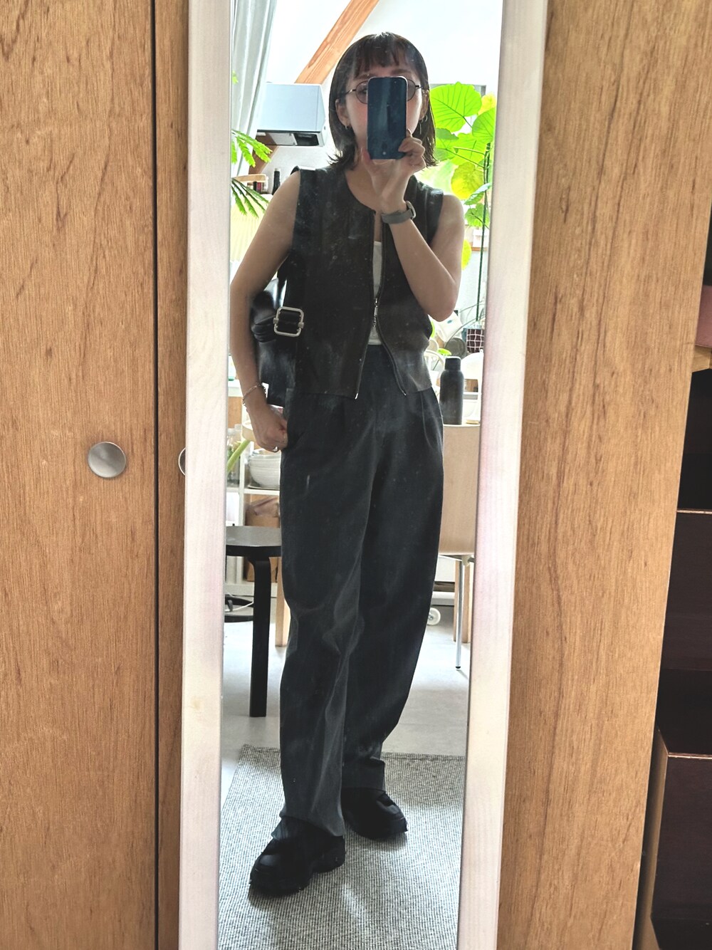 GUのダブルジップセーター(カーキ)、スラックスと合わせてハンサムに着てみたかった。ノースリーブのときって、スカートでもパンツでも脚元ボリューミーだと可愛い気がするという謎の持論。 ラストマイル観にいくので伊吹風カラーサングラスかけてみた🕶️🎥