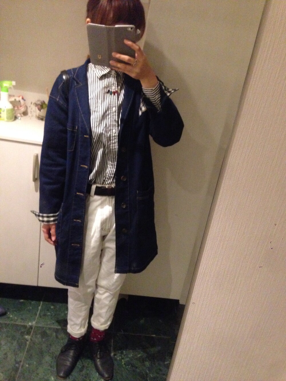 デニムオンデニムなんだけど、 色味変えたのでそこまで分からない感じに…。 全体的にシンプルなので、靴下でアクセントにしました\( ˆ ˆ )/ tops cepo. pants w closet outer DOUBLE NAME shoes alcali