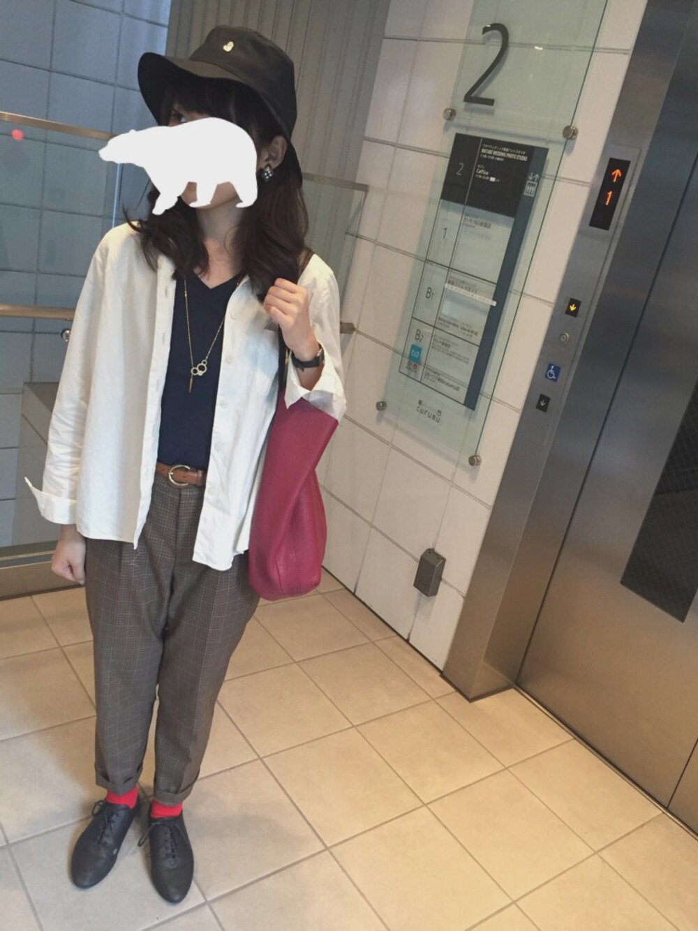 おじさんコーデがすきです。 ベルトは母からのおさがり。 靴下とカバンを赤に揃えてポイントにしましたʕ·ᴥ·ʔ *