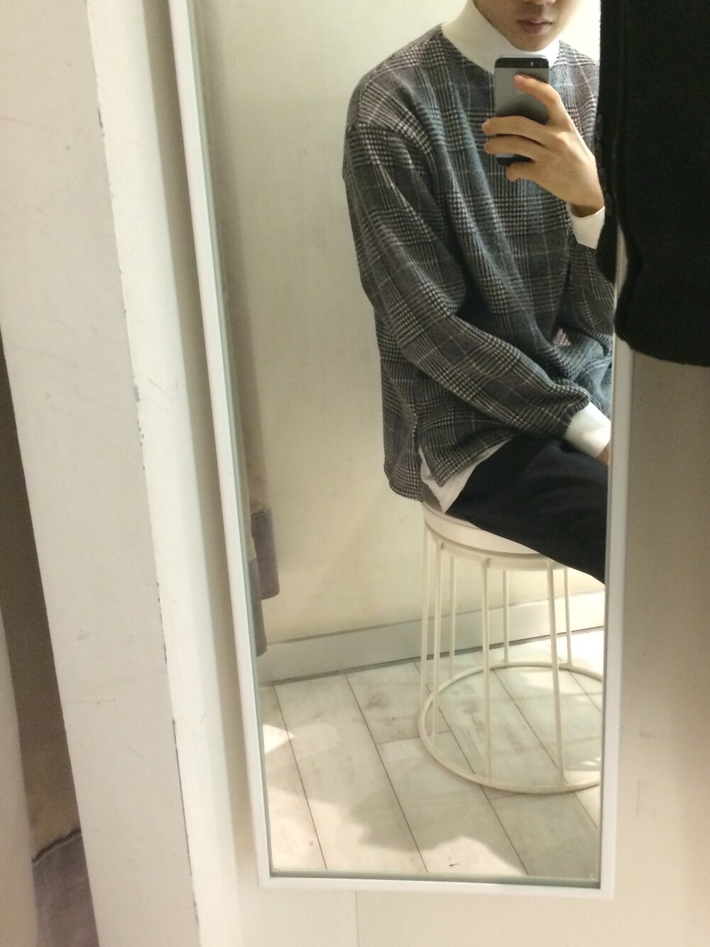 グレー系のTシャツ/カットソーを着用したメンズの冬コーディネートの1枚目の写真