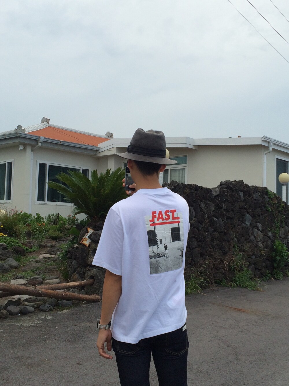 ホワイト系のTシャツ/カットソーを着用したメンズの夏コーディネートの1枚目の写真