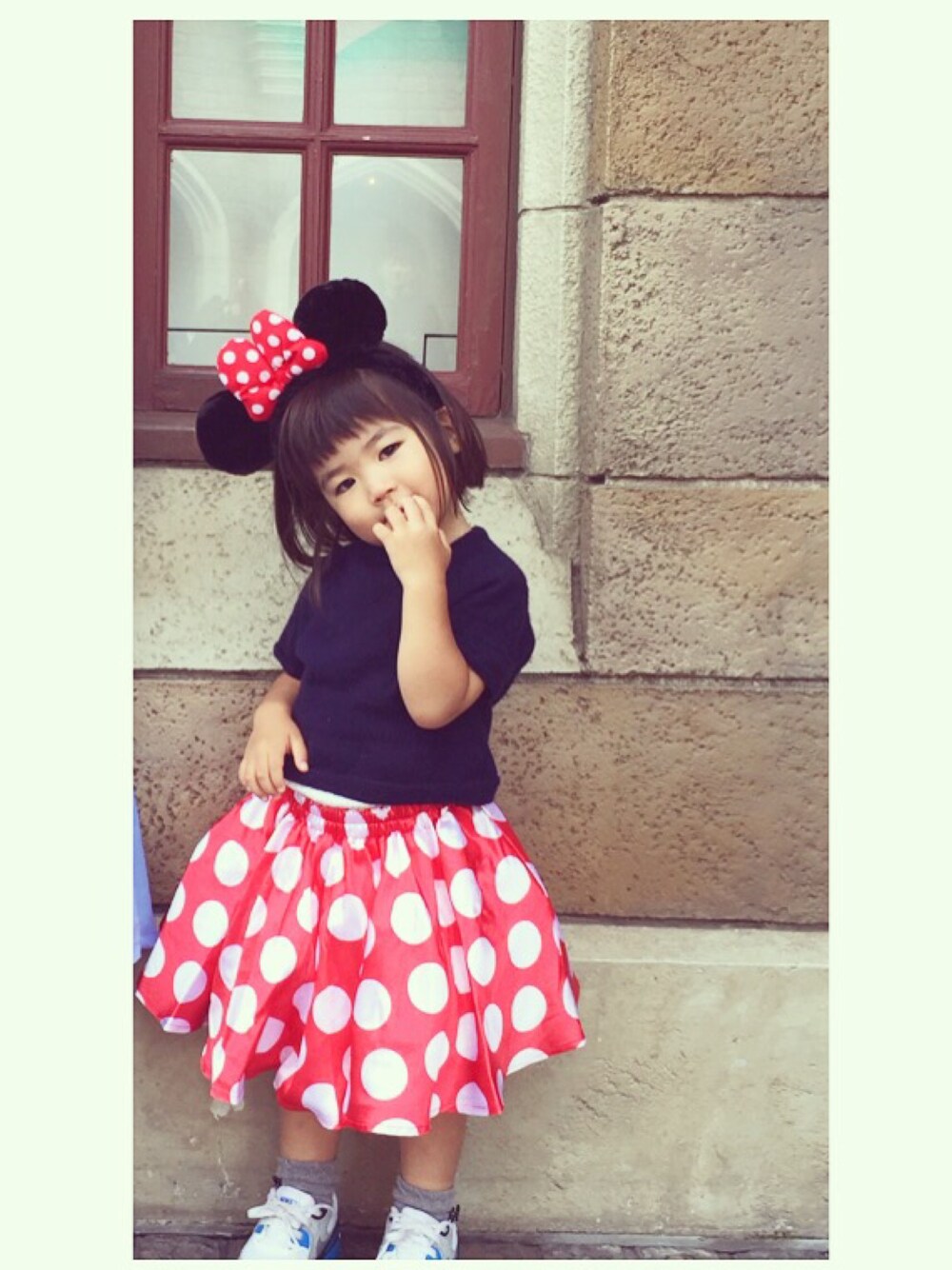 ディズニーランドでのミニー衣装です♡ タイツ履きたかったけどまだ暑かった💦 初コスプレ♡笑