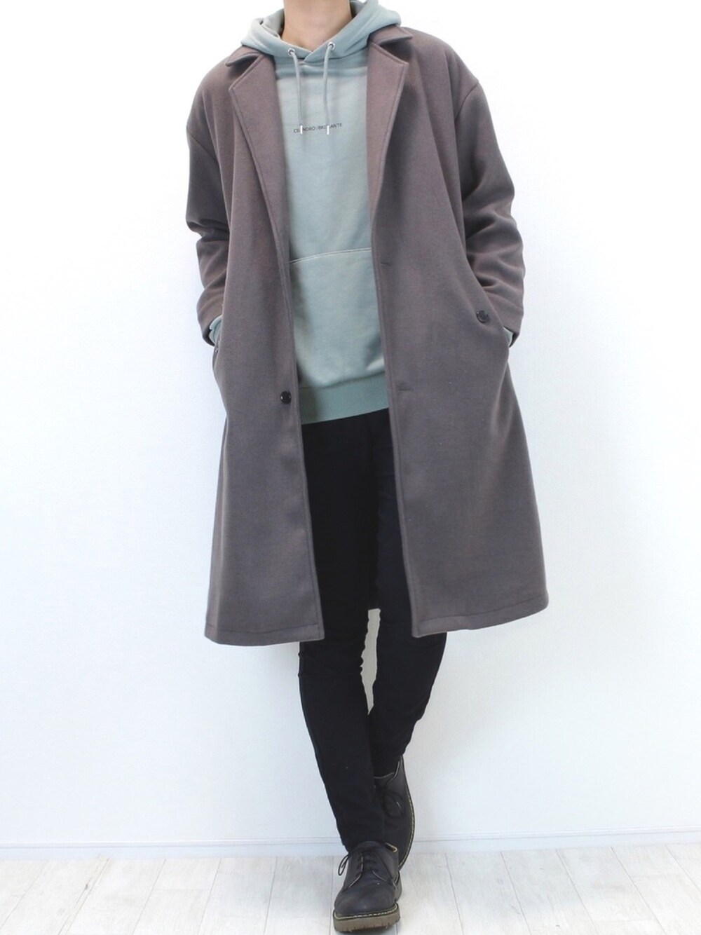 梅田梅のチェスターコート「ビーバーメルトン オーバーサイズ ロングダブルチェスターコート (EMMA CLOTHES)」を使ったコーディネート