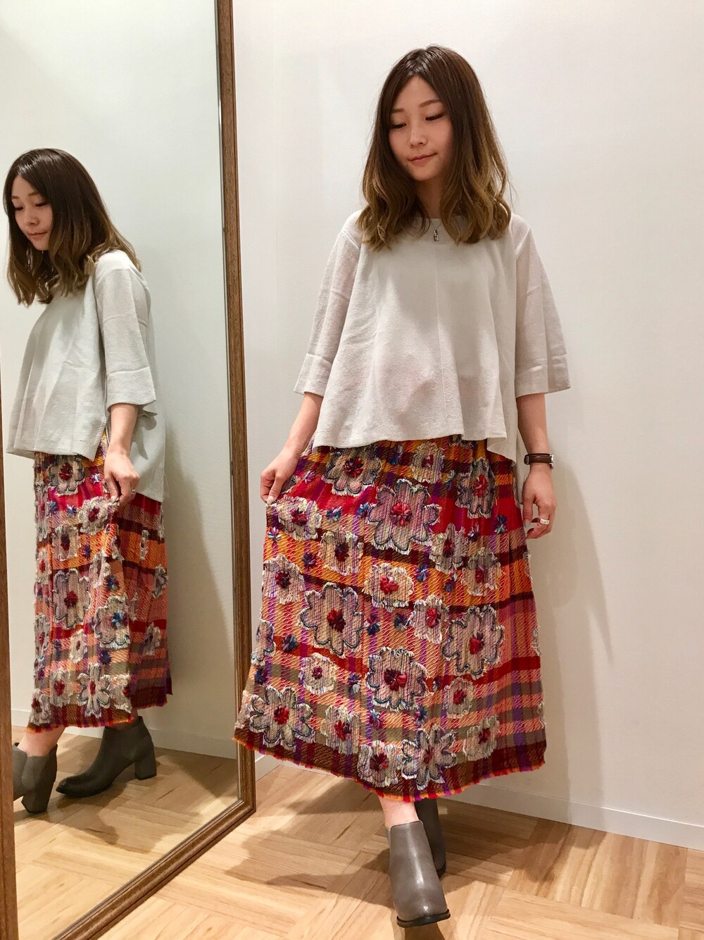 今年も刺繍スカートが入荷をいたしました! 去年よりも丈が長く、ボリュームも抑えられる為ブーツとの相性もばつぐん◎ お揃いのストールもございます(*^_^*)