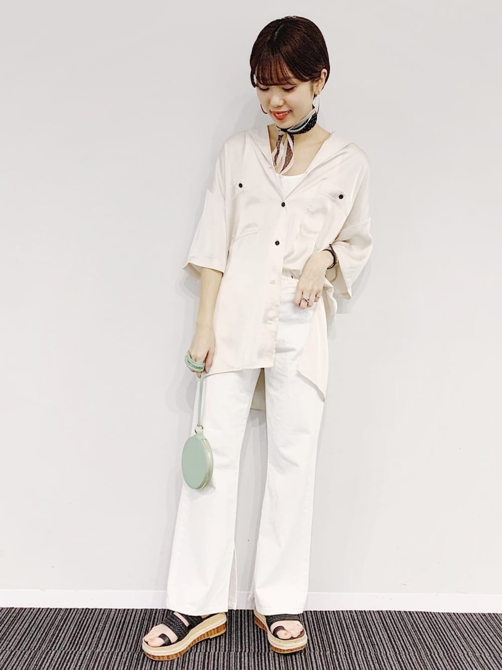 ワントーンコーデ♡ デニム×サテンで素材感でアクセントを! Instagram → @_aschan13