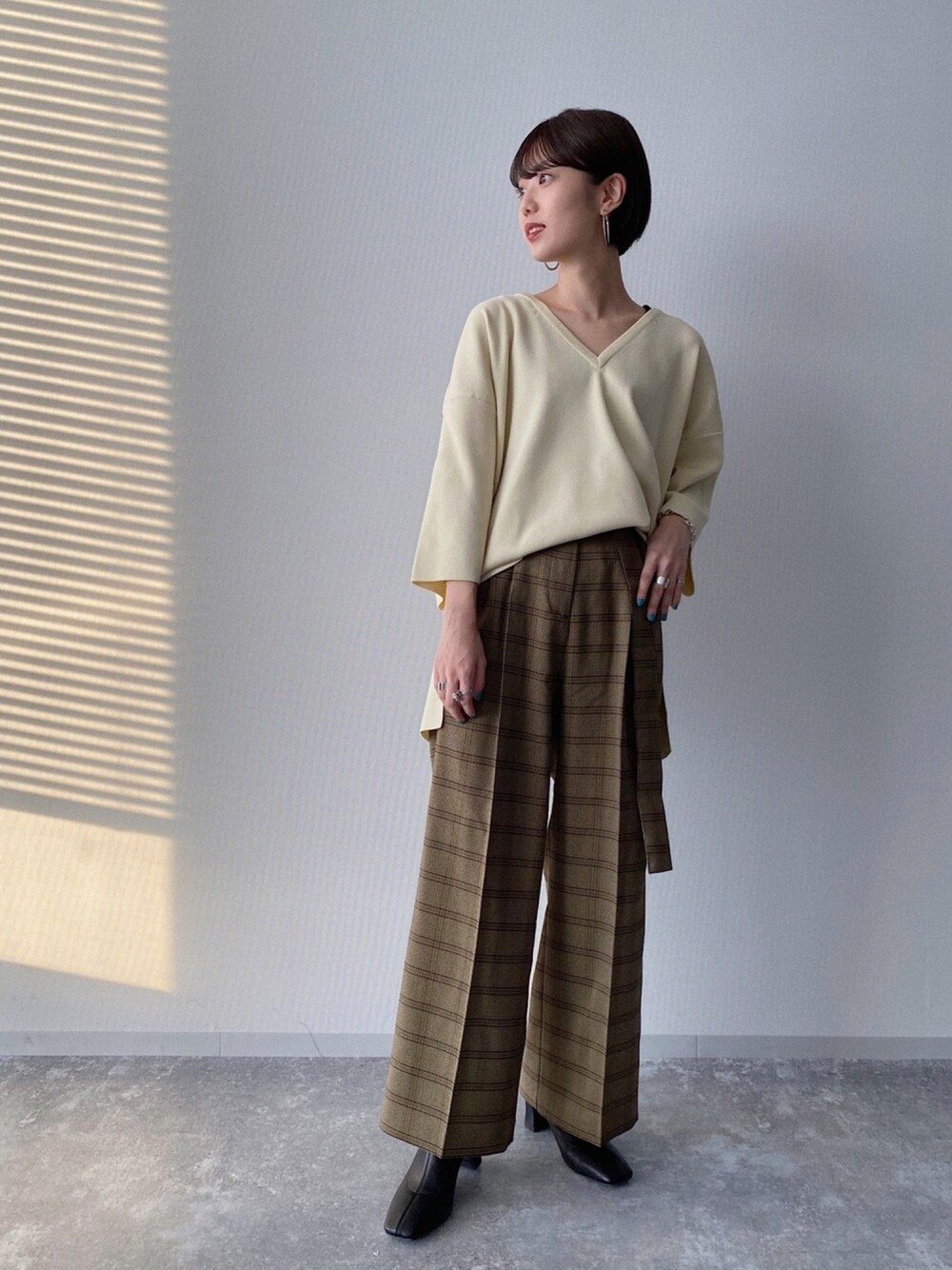 秋らしくチェックパンツ♡ 秋といえばチェックが着たくなる! ストレートシルエットで ハイウエストなのですごく形が綺麗です♡ トップスは少し艶っとしたものを 持ってきて大人っぽく、、! Instagramも更新してます🍋 L.....→ @_aschan13