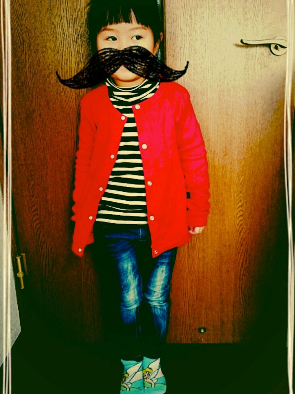 赤いカーディガン 妹もお揃いだけど、逃げられた!