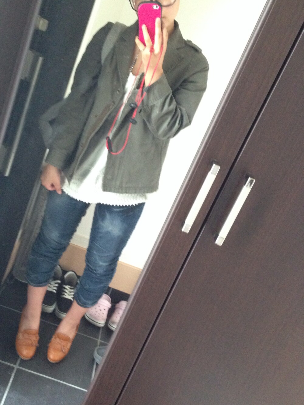 ÿのミリタリージャケット「earth music&ecology カーキジャケット」を使ったコーディネート
