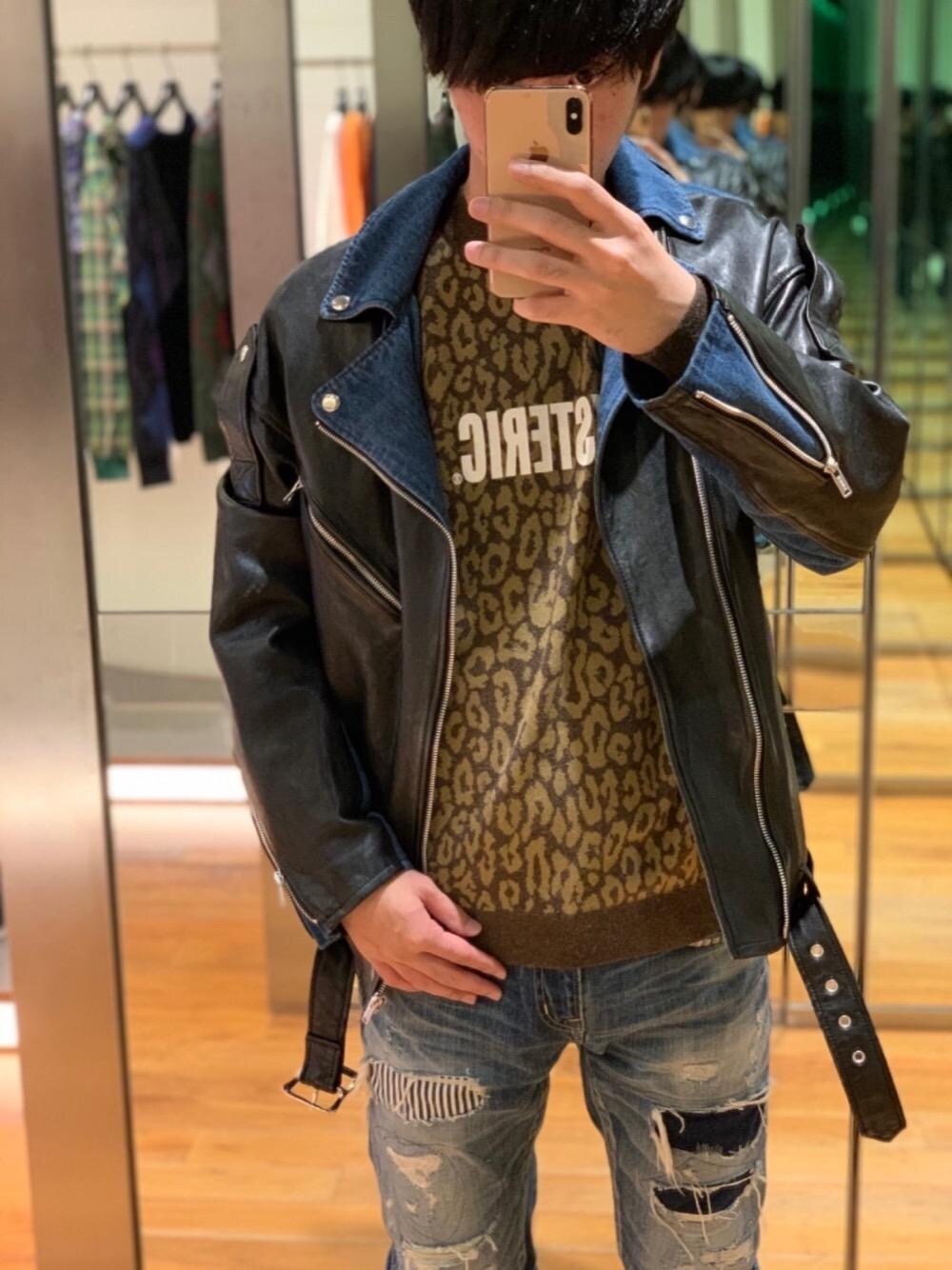 けんた(HYSTERIC GLAMOUR名古屋店)のライダースジャケット「FORWARD WITH BAD GIRLラムレザー×ユーズド加工 ダブルライダースデニムジャケット」を使ったコーディネート