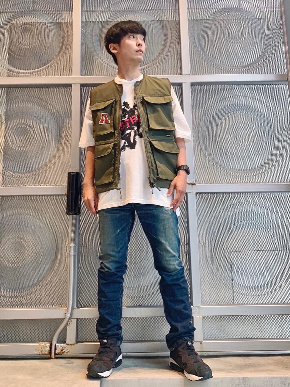 けんた(HYSTERIC GLAMOUR名古屋店)のデニムパンツ「RW CLASH加工デニムスリムストレートパンツ」を使ったコーディネート