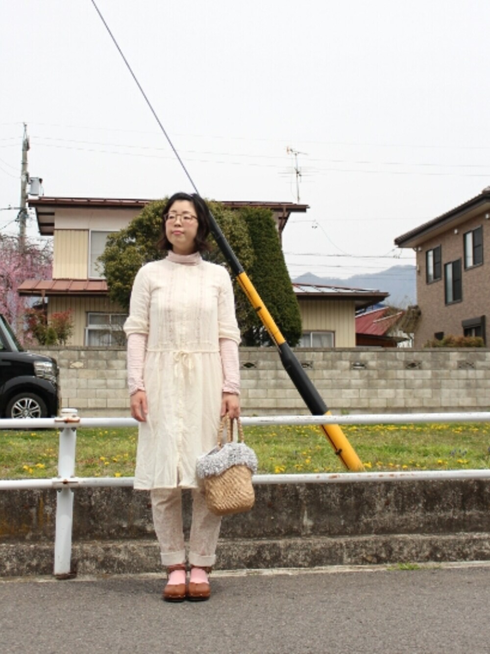 今日のコーデ ピンクピンク٩(๑´꒳ `๑٩) ワンピの中のハイネックも薄ピンク earthのパンツは昔ので、柄の中にウサギちゃんがいる素敵パンツ🐰💭 ワンピース⇒earth music&ecology コーデの撮影場所を家の前の道路に変えてみました 隣人や通りすがりの車の人に不審な目で見られますw