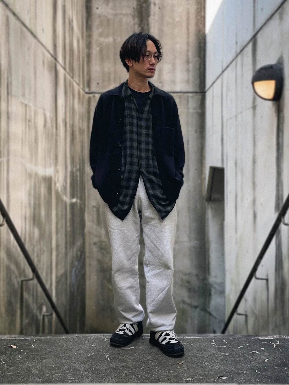 Kottamのカーディガン/ボレロ「ニットオーバーシャツジャケット (BLACK)」を使ったコーディネート
