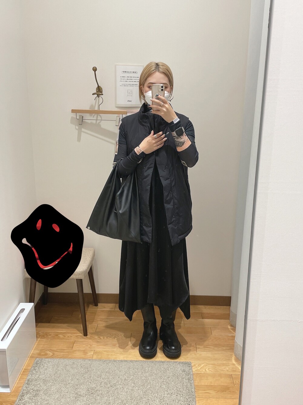 荷物置いてたから☺︎で隠してます〜〜〜 髪色明るくしてから真っ黒コーデ多め❤︎