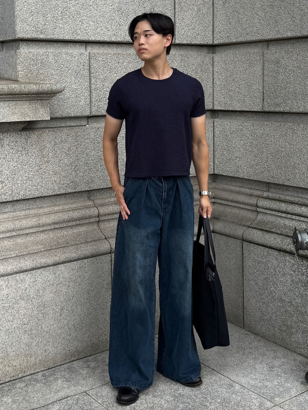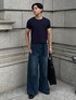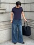 流行りの短丈Tシャツ×ワイドデニムでAラインシルエットを演出したコーデ💡 同系色でも色味や素材感を変えるとこなれ感出るからオススメ! 質問あればお気軽に!