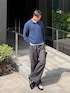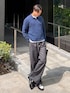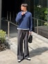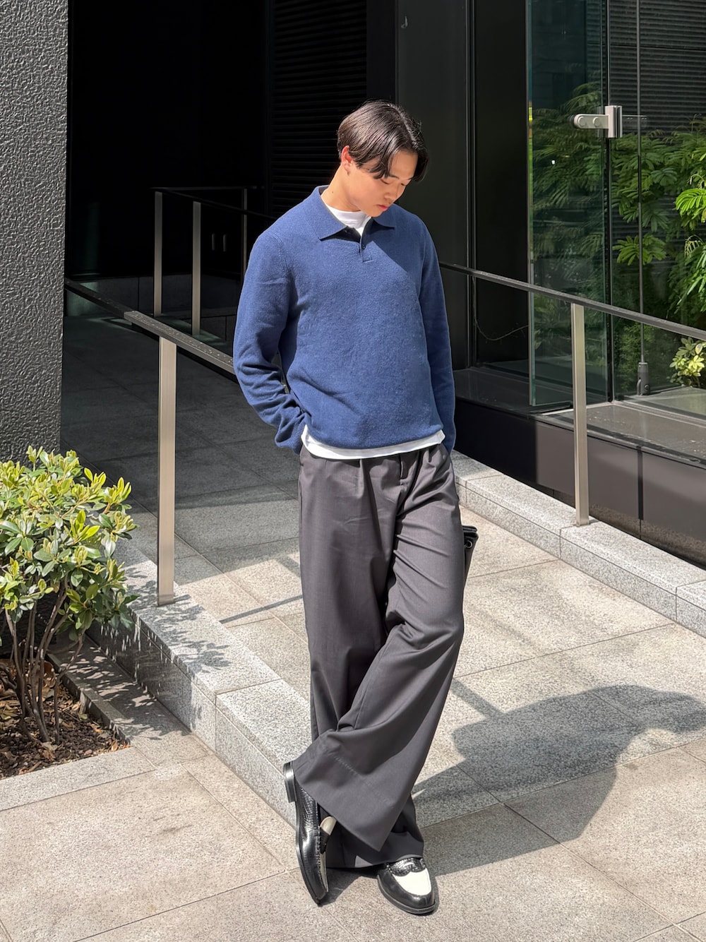 ニットポロに白Tシャツをレイヤードするとコーデが垢抜けるからオススメ! パンツは黒ではなく、グレーを選ぶと周りと差別化できるよ💡