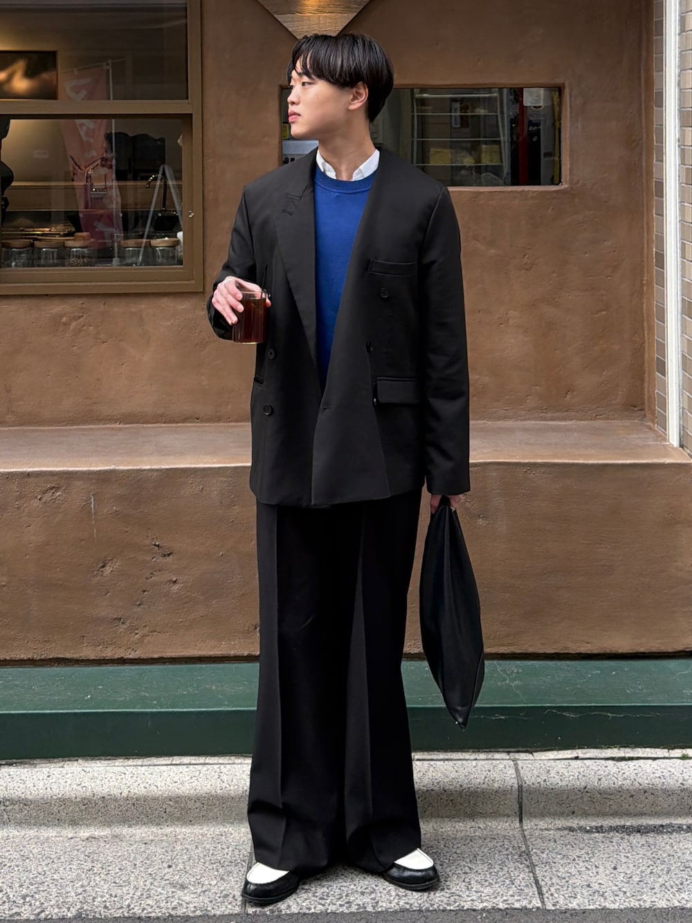 Asuのテーラードジャケット「【LURAKU】Double-Breasted Jacket / ダブルブレストジャケット|SETUP対応」を使ったコーディネート