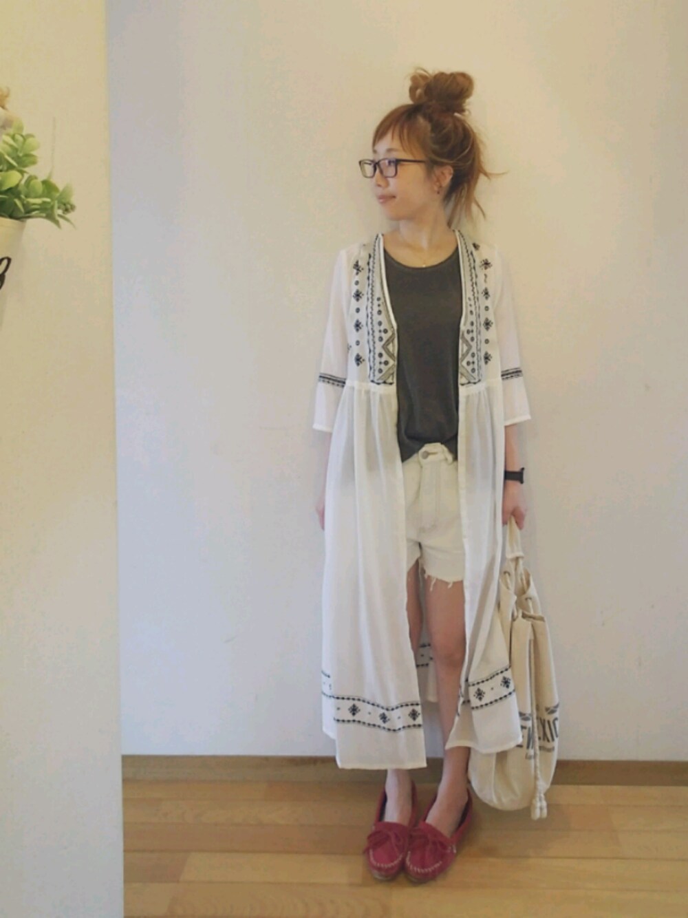 ショートパンツはJEANASISのもの☺ 裾を自分でcut✂ 今日もジメジメ☔️💨 バスケの試合の応援に行った体育館はエアコン効いてて快適やった〜♥