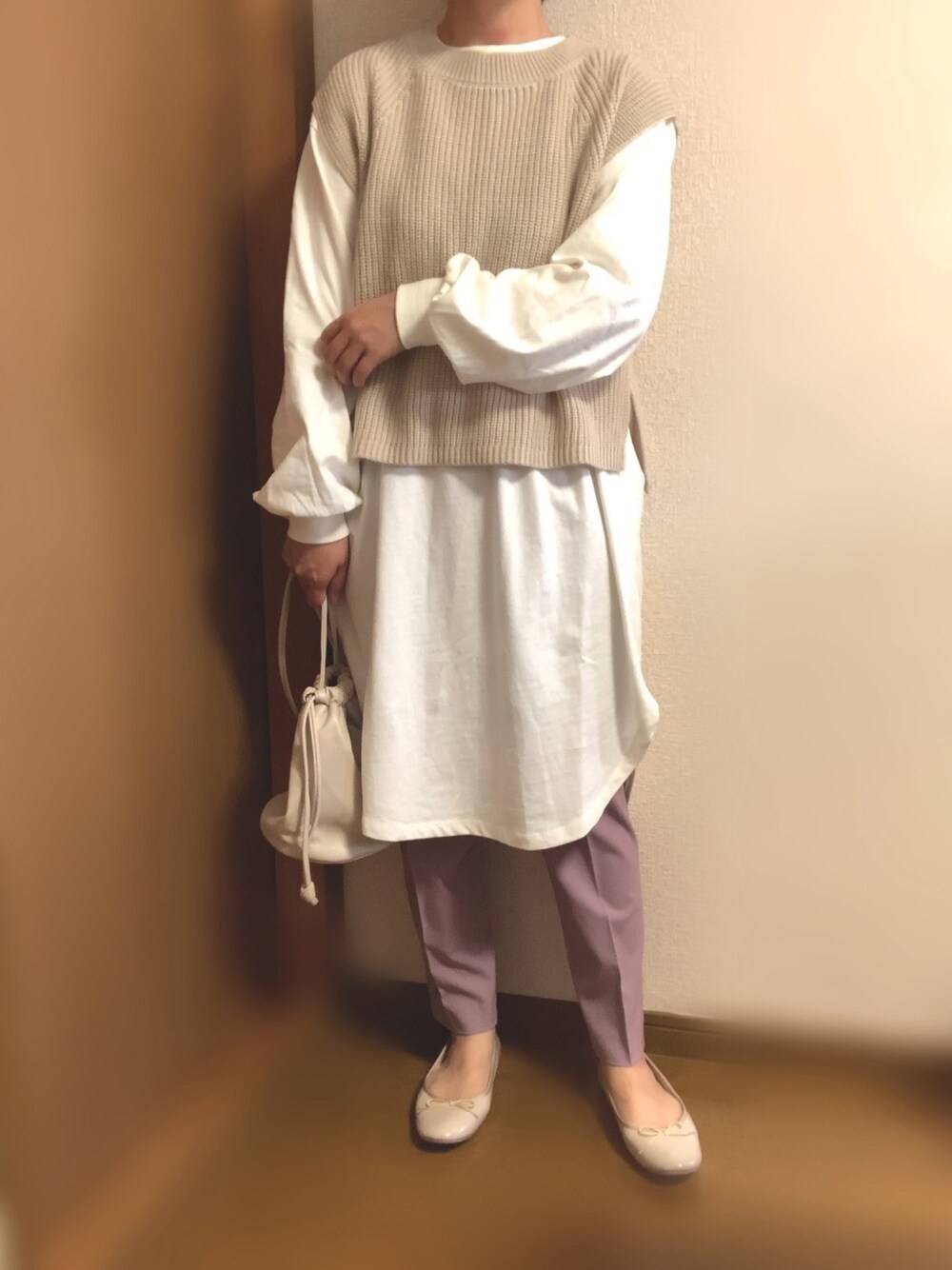 sun_iasのワンピース「ニットベストレイヤードワンピース/861960」を使ったコーディネート