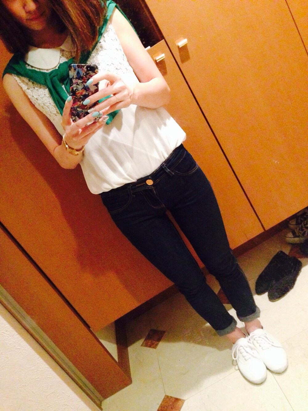 スニーカー:g.u パンツ:ベルシュカ トップス:去年もの いつもTシャツ着ちゃうけど今日は! でも去年もの。笑 白いスニーカー履いて今年に追いつこうとしてます