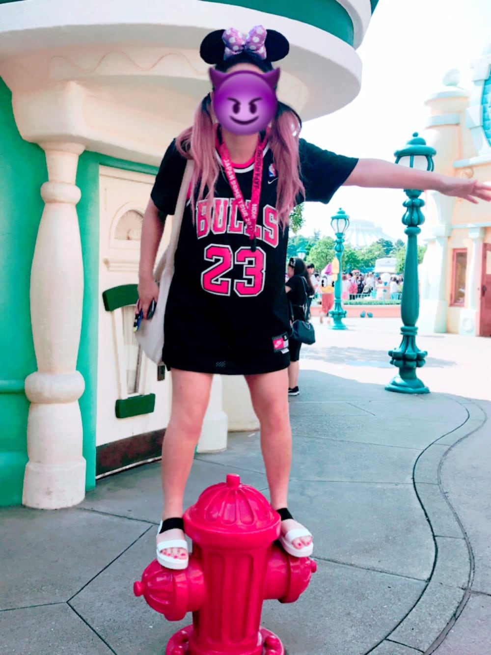 ネズミーランドへ行った時のBULLSのバスケタンクを使ったコーディネートです🐭