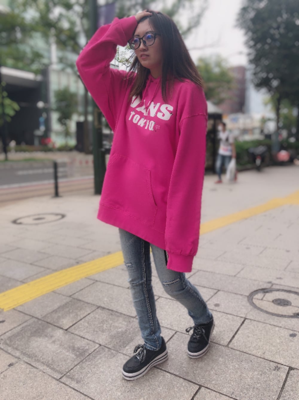 ビビットカラーのパーカーと パワーストレッチスーパースキニー スキニーだいすき😍 パーカーも真っピンクで好きな色💋 学校や仕事終わりに遊びに来てね