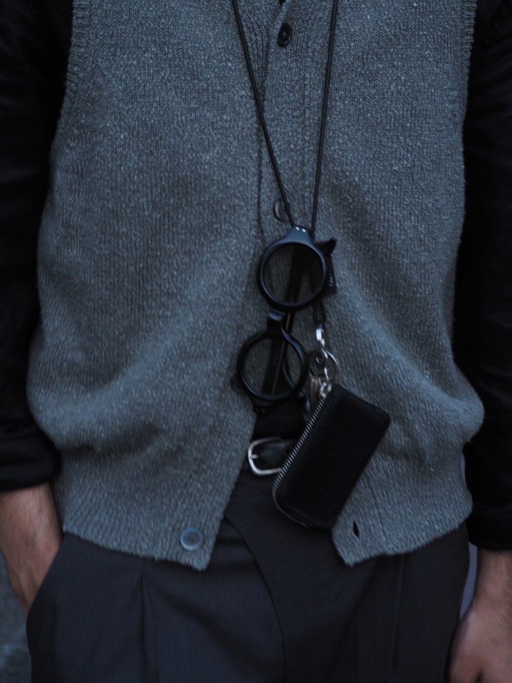 アスガル(GARDEN 名古屋店)のベスト「crepuscule /クレプスキュール/Knit Vest/吾亦紅xクレプスキュール ニットベスト」を使ったコーディネート