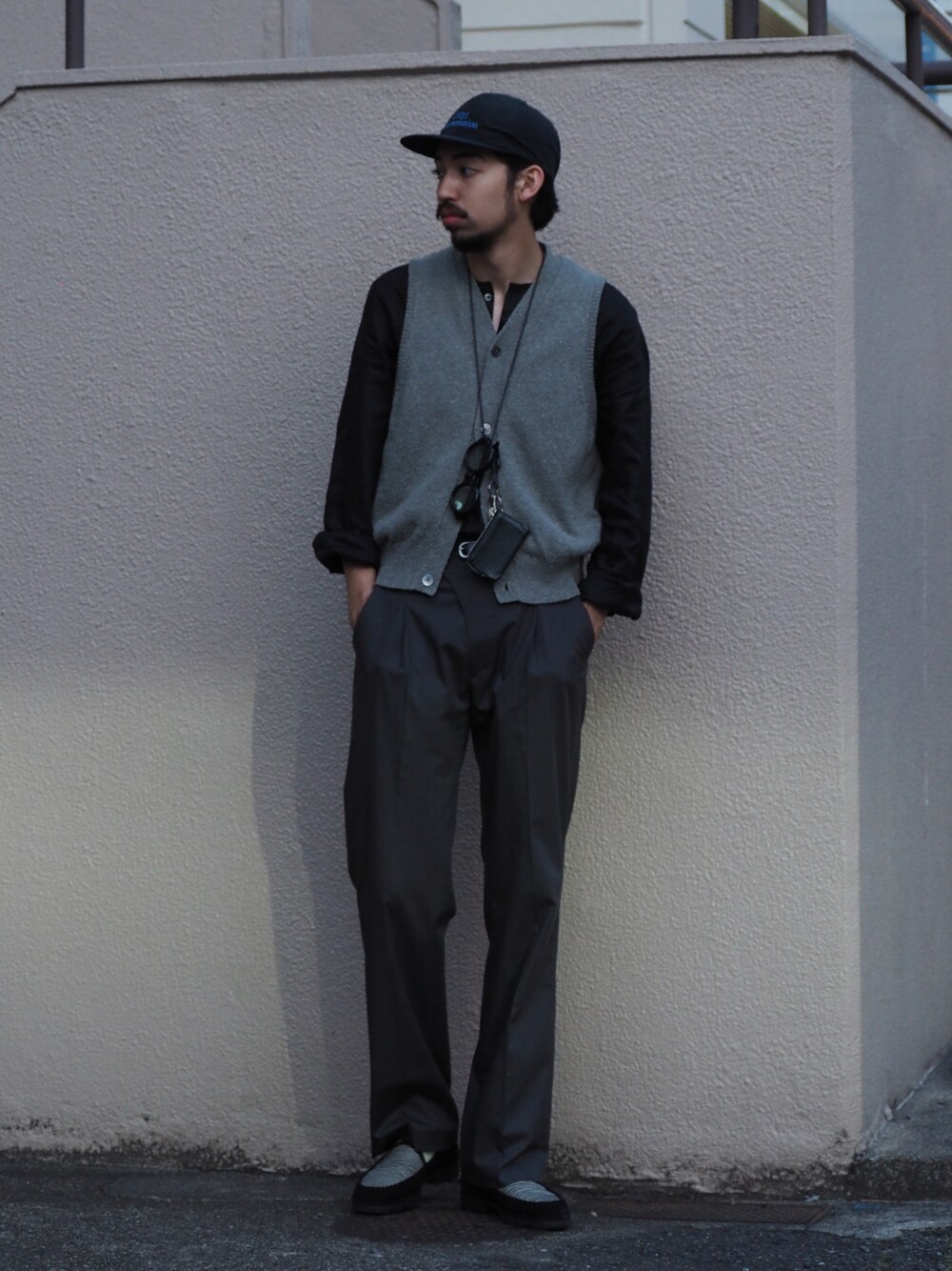 アスガル(GARDEN 名古屋店)のベスト「crepuscule /クレプスキュール/Knit Vest/吾亦紅xクレプスキュール ニットベスト」を使ったコーディネート