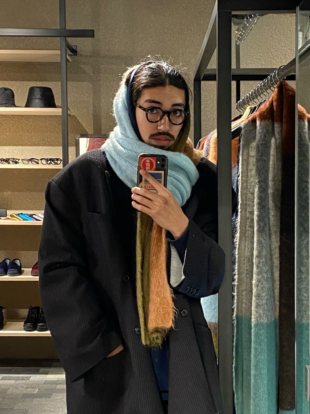 マフラーは頭も巻いてまいます。 feet.friends