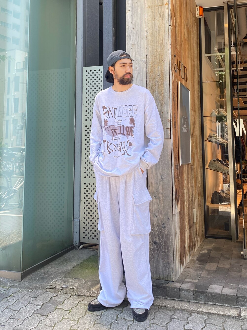 アスガル(GARDEN 名古屋店)のカーゴパンツ「Toironier/トワロニエ/"2Tuck Sweat Cargo Pants"」を使ったコーディネート