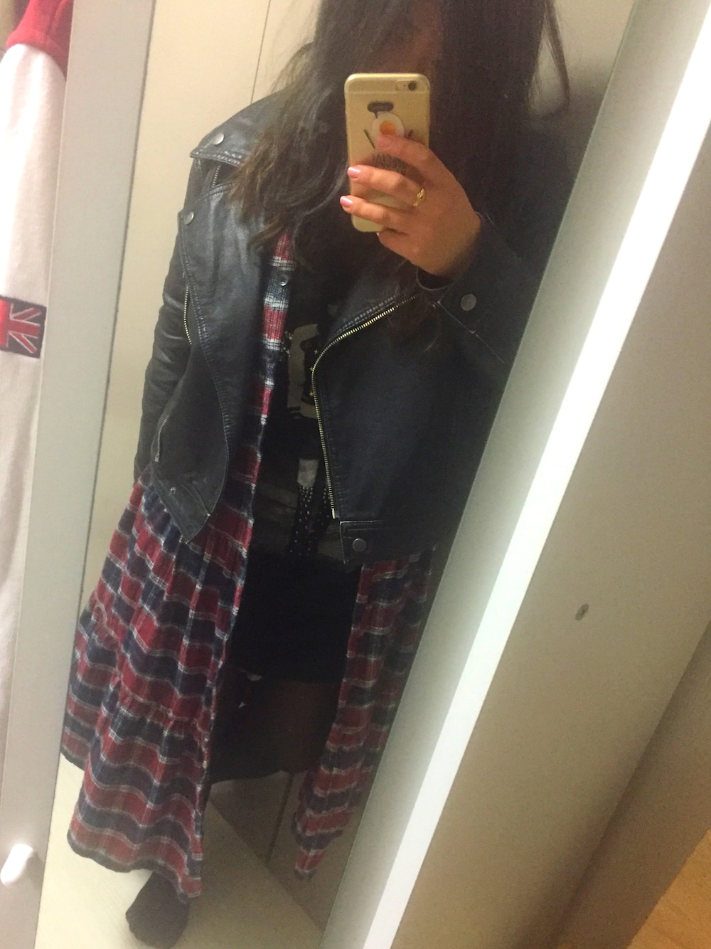 ロングの赤チェックシャツワンピがお気に入り💓