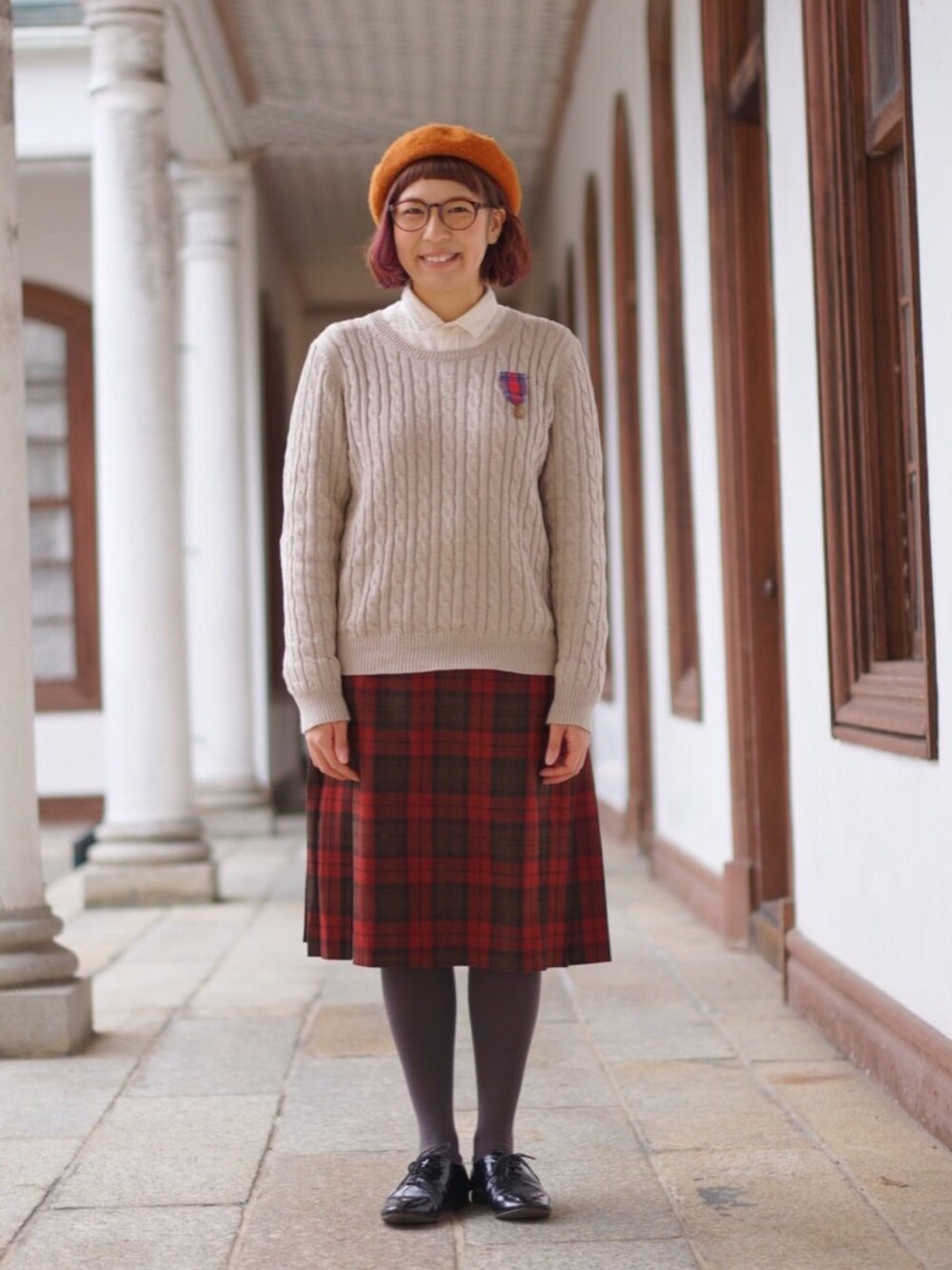 明治村で撮影会! ドレスコードは学生風。 胸にはハンドメイドの勲章ブローチを。 あ、気づいたら全身無印だ。