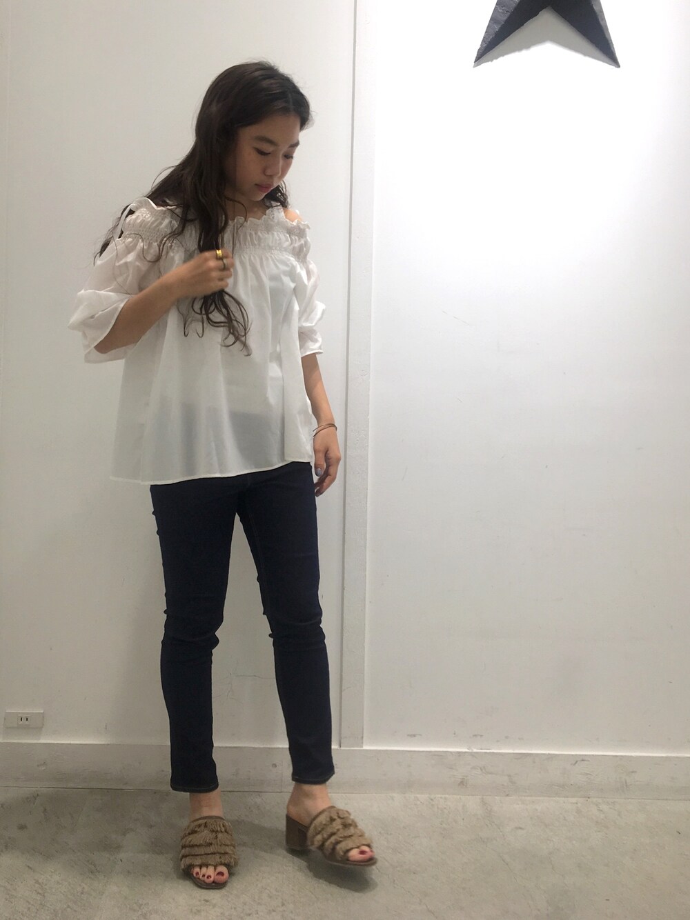 あすぽんのシャツ/ブラウス「シャーリングギャザーブラウス●★」を使ったコーディネート
