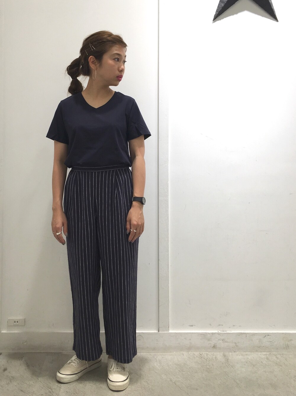 ネイビーコーデ◎ メンズライクでもどこか女性らしい印象を与えるネイビー(^ω^)Vネックでさらに女性らしさをプラス♪