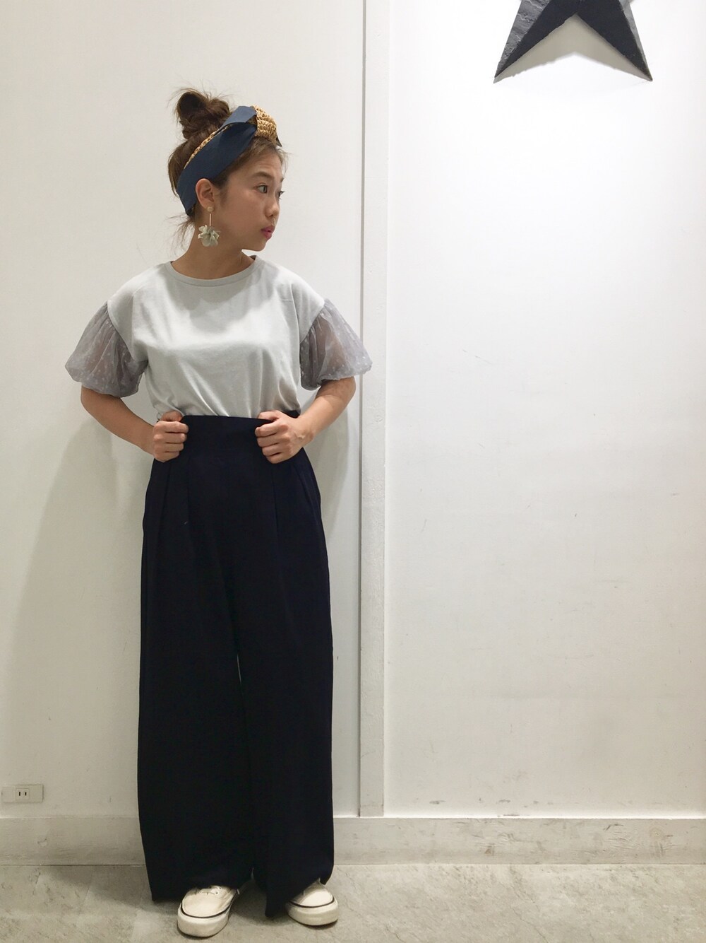 あすぽんのパンツ「・タックボリュームワイドパンツ」を使ったコーディネート