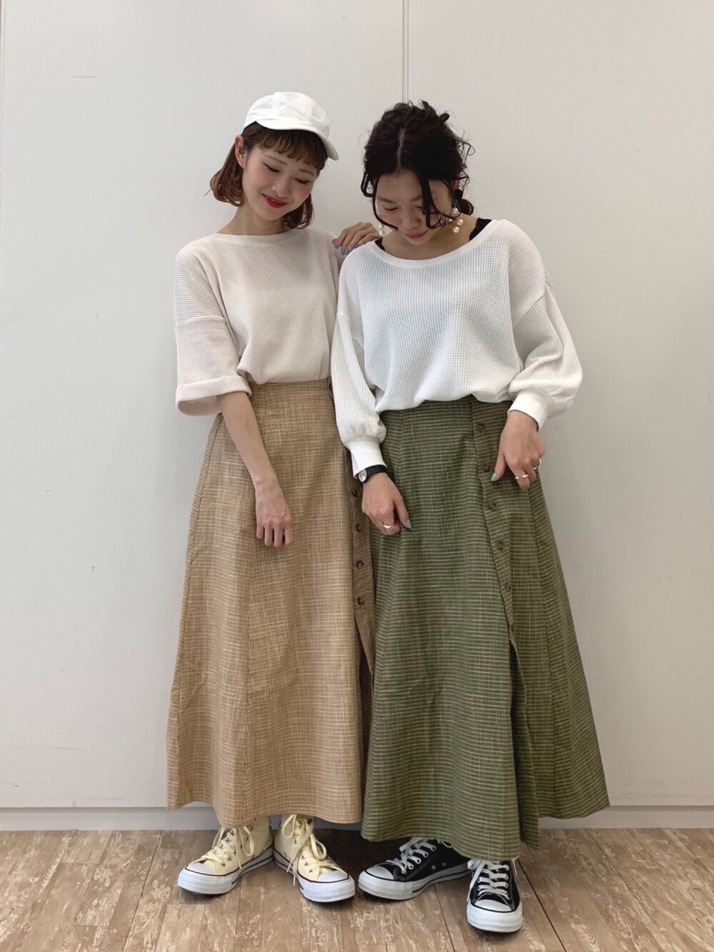 あすぽんのスカート「チェック前釦スカート*」を使ったコーディネート