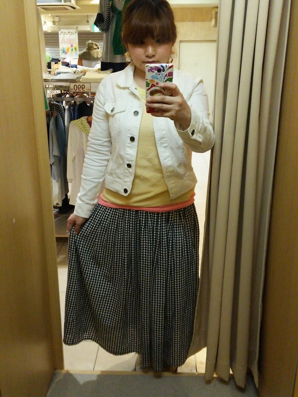 春らしく、白とイエローを合わせてみたょ~(*・ω・)🎵 新しいパールのピアスもつけた~ヾ(*´∇`)ノ