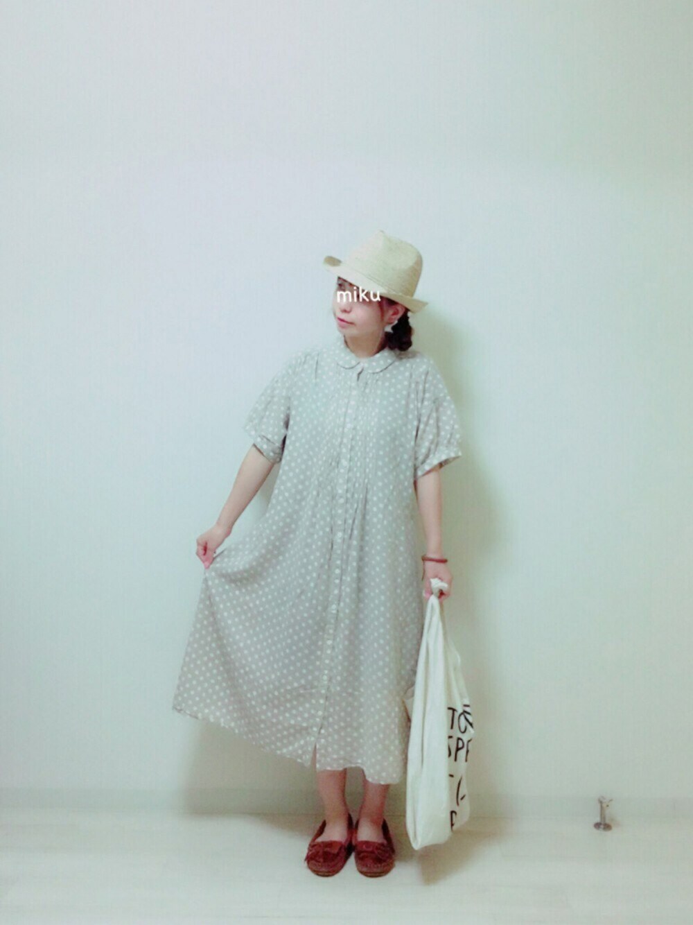 いつも見ていただきありがとうございます♡ ♡、セーブ、コメント、フォロー嬉しいです♪ この前のコーヒーカラーコーデの時に迷ったコーデです☕️✨ またまた断捨離中に見つけたワンピース👗 ずっと着てなかった💦 着たらゆるシルエットがヨカッタ😊 チビーズの私にこのオーバーサイズなのが微妙で着てなかった気もする。。若かったからミニがかわいいと思ってたのかも😅 でも今はそれがいいかなーって思う✨ 丈とか肩落ち具合とか丸襟もたまらん☺️ ベージュかグレーか微妙な色合い😅こーゆーのグレージュと言うのか?←BBA丸出し😵w ドットと言わず水玉って言いたいワンピ💓かわいいKOROちゃんの真似っこして。。 バトン回すわけじゃないけど、タグだけ使わせてもらいまーす☕️ この前のコーデで被ってた帽子と今日のとニコさんの😄 「2点以上でさらに〜」ってよくあるフレーズ💡まんまとはまっちゃいます😵w 今日のはラフィア素材👒 かわいいkinokoちゃんとイロチかも💓 去年もツバ広めのラフィアハットをニコさんで買ったけど、濡れてダメになったのを〔←ちゃんと伝えて〕メルカリで売ってまた買った⭐️ 去年は1ヶ月早いくらいで定価で買ったけど、少し待てばこんな破格になるのか!と学びました😂 ラフィア柔らかくって好きー👒今年は大事に使おう😊 腕にDAISOの虫除けブレスしてます🐝