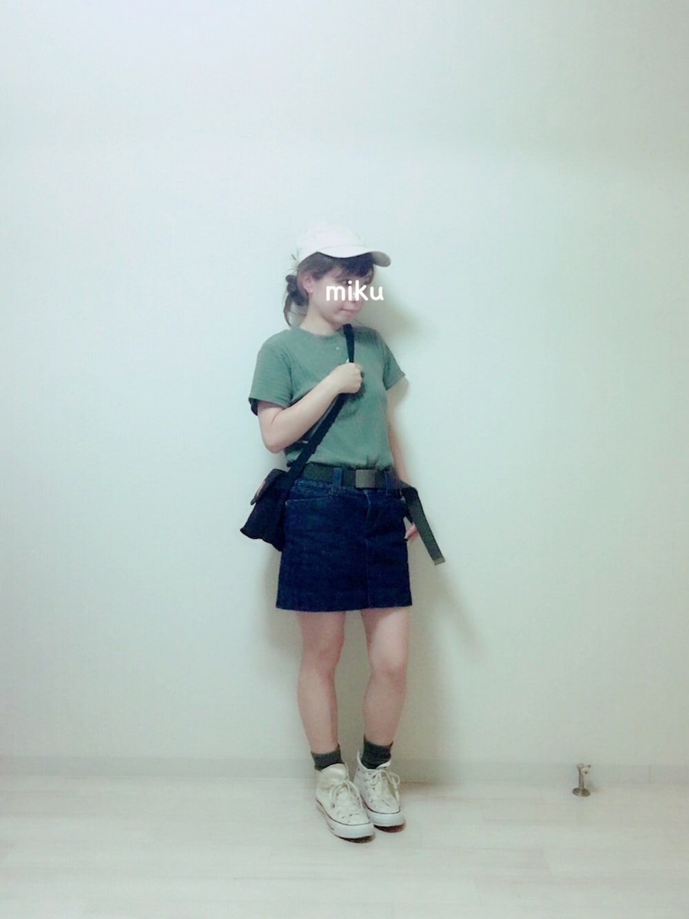 いつも見ていただきありがとうございます♡ ♡、セーブ、コメント、フォロー嬉しいです♪ お久しぶりですー(*ˊૢᵕˋૢ*) ずっと息子とひきこもって過ごして干物になってました🐟💦 おかげさまで息子元気になりました😆⭐️ 早くよくなるように✨と祈ってくれてた心優しい方々のおかげです😭✨ 前半の高熱でグッタリの頃しかたなくばぁばに預けて仕事に行くと「ママ好きなのに。。」って騒ぐ元気もなくつぶやくように言われ心苦しかった😂しばらくお休みとってゆっくり過ごすのもいいかなー思ったけど、元気になったらわがままがすごすぎてもう耐えられない😫とパパに預け、短時間だけど仕事に💡 そぉ、仕事に逃げたダメなかぁちゃんなんです😅 少し離れて帰ったらまたかわいく見えた💕この距離感大事かもー😂 さてさて、これから夏を取り返していくぞー☀️ わけもわからず、ドラフト参加コーデ。 かれこれ10年物にはなるであろうこのデニムスカートがRNAでした!若いとき履いてたやつだからミニ丈だよね、おチビは多少の露出もエロくならないという自論で生足披露ほんとに失礼します😭座ったらむっちむち太もも強調されて自分に気持ち悪くなりました😭 RNAとかCandyStripperとか好きで今で言う青文字系?(当時はそんな言葉なかった)←この世代にあてはまる人いないかなぁ?? Zipperを講読してた頃の名残で。。ってこのデニムスカートしか持ってない!記念のドラフト参加です✨ 古着で見つけたリブTは大成功でした❤️ダイソーのガチャベルトと靴下でカーキコーデにしましたぁ☺️